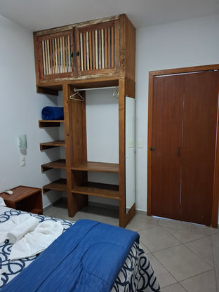 Possui 2 quartos, um deles é suíte, os dois com ar-condicionado, cama box confortável e armário.